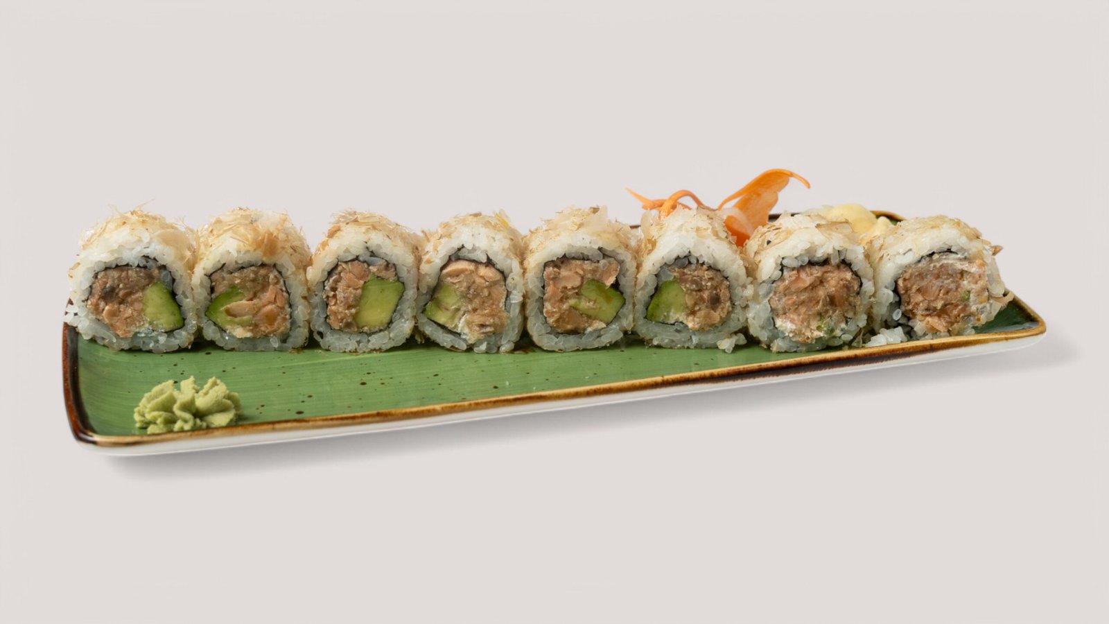 mit Teriyakilachstartar und Avocado